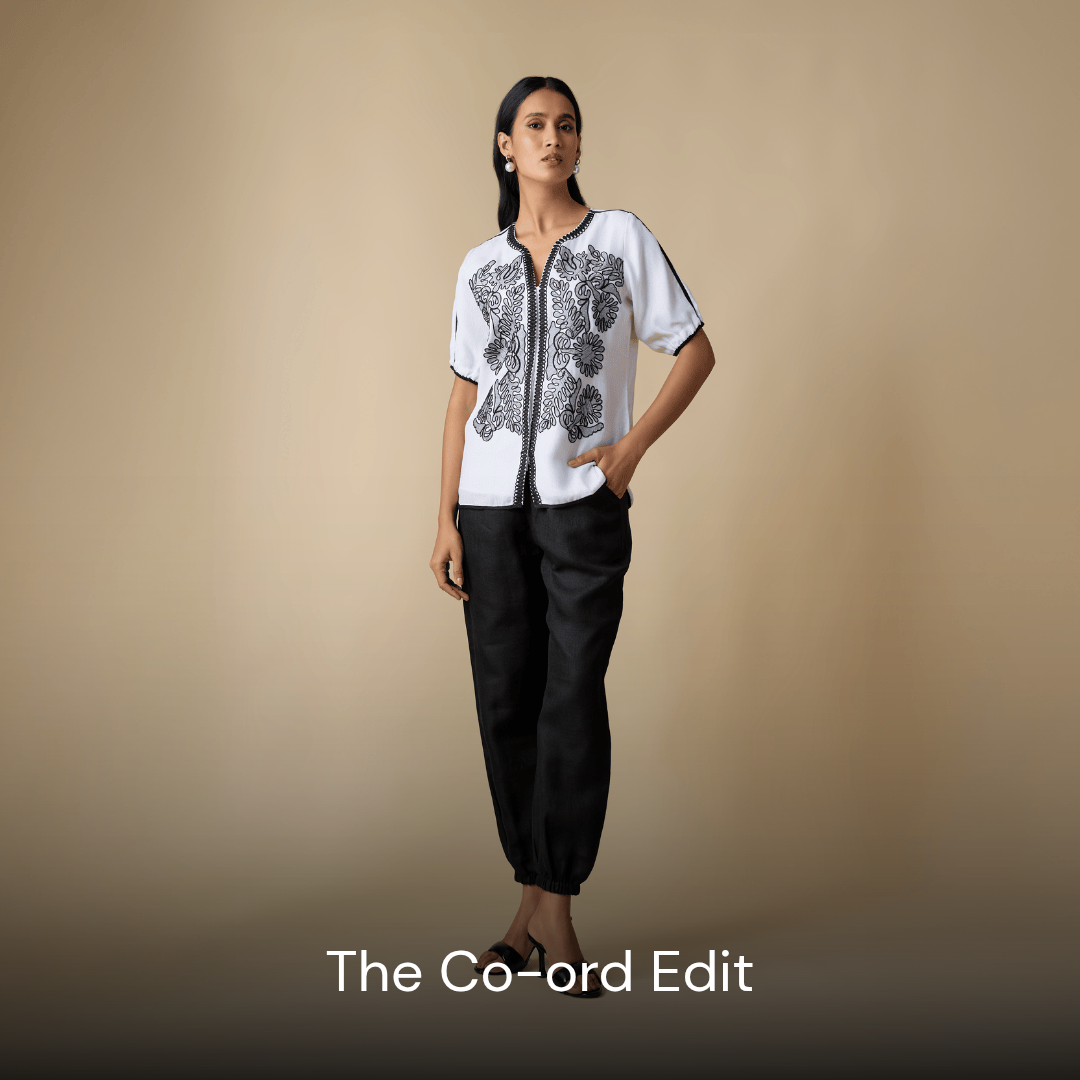 WHITE EMBROIDERED SHIRT & BLACK EMBROIDERED PANTS