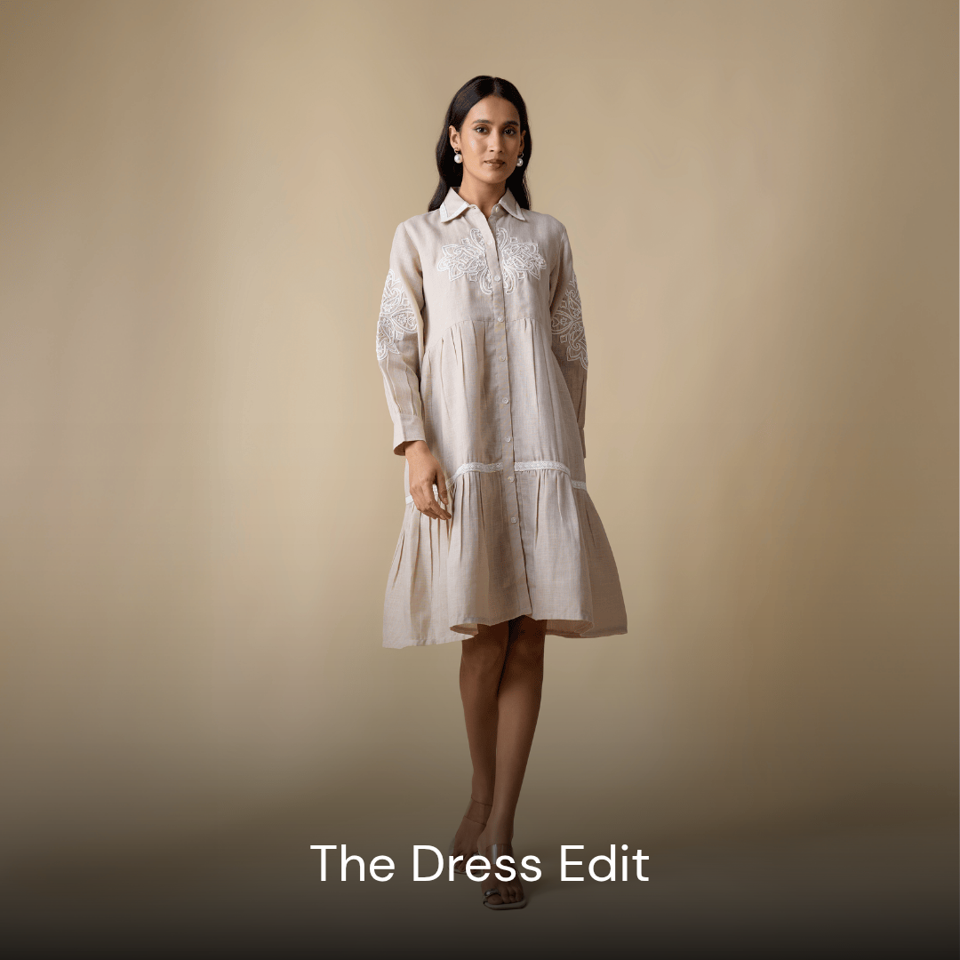 BEIGE SELF EMBROIDERED MIDI DRESS