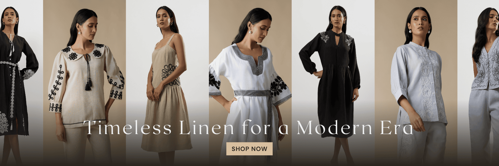 BEIGE WITH CONTEMPORY BLACK EMBROIDERED DRESS